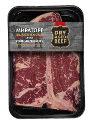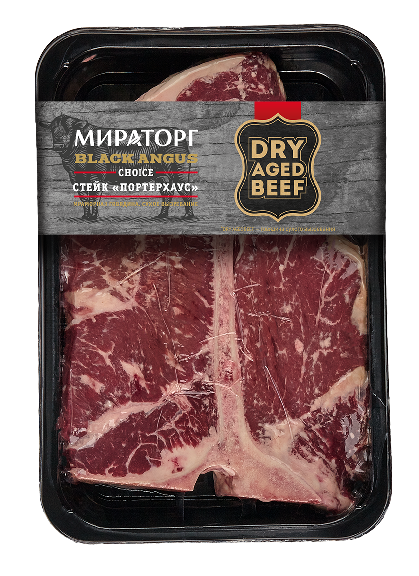 Королевский стейк — очень большой, очень сочный и очень вкусный. Портерхаус состоит из мяса сразу двух отрубов, сочетая в себе уникальный аромат стриплойна и неповторимую нежность филе-миньона. Готовить его необходимо с умом: ведь когда вырезка прожарится до Medium Rare, стриплойн уже будет Medium. Это идеальный вариант, который обеспечит неповторимое сочетание двух, казалось бы, несовместимых блюд. Перед приготовлением мясу обязательно нужно дать немного «подышать», чтобы ваш портерхаус получился именно таким, каким он и задумывался — удивительно нежным, с легким ореховым ароматом, который стейку придает косточка, и потрясающе сочным. В результате помещения в специально оборудованной камере со строго определенной температурой и влажностью говядина сухого вызревания приобретает неповторимый вкус и аромат с легким ореховым оттенком.