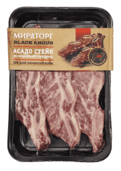 Стейк говяжий Мираторг Black Angus Асадо 500г - это мясо высокой степени мраморности, представляющее собой мелко напиленные ребра с сочным мраморным филе. Традиционно стейки из этой части говяжьей туши готовят в Аргентине и других странах Латинской Америки, а мужчины, занимающиеся приготовлением, называются асадоры. Лучше всего стейк Асадо готовить на открытом огне и подавать с соусом Чимичурри из свежих трав, чеснока и растительного масла. Продукт не содержит ГМО и гормонов роста. Специальная упаковка skin позволяет сохранить все питательные и вкусовые качества в течение всего срока годности.